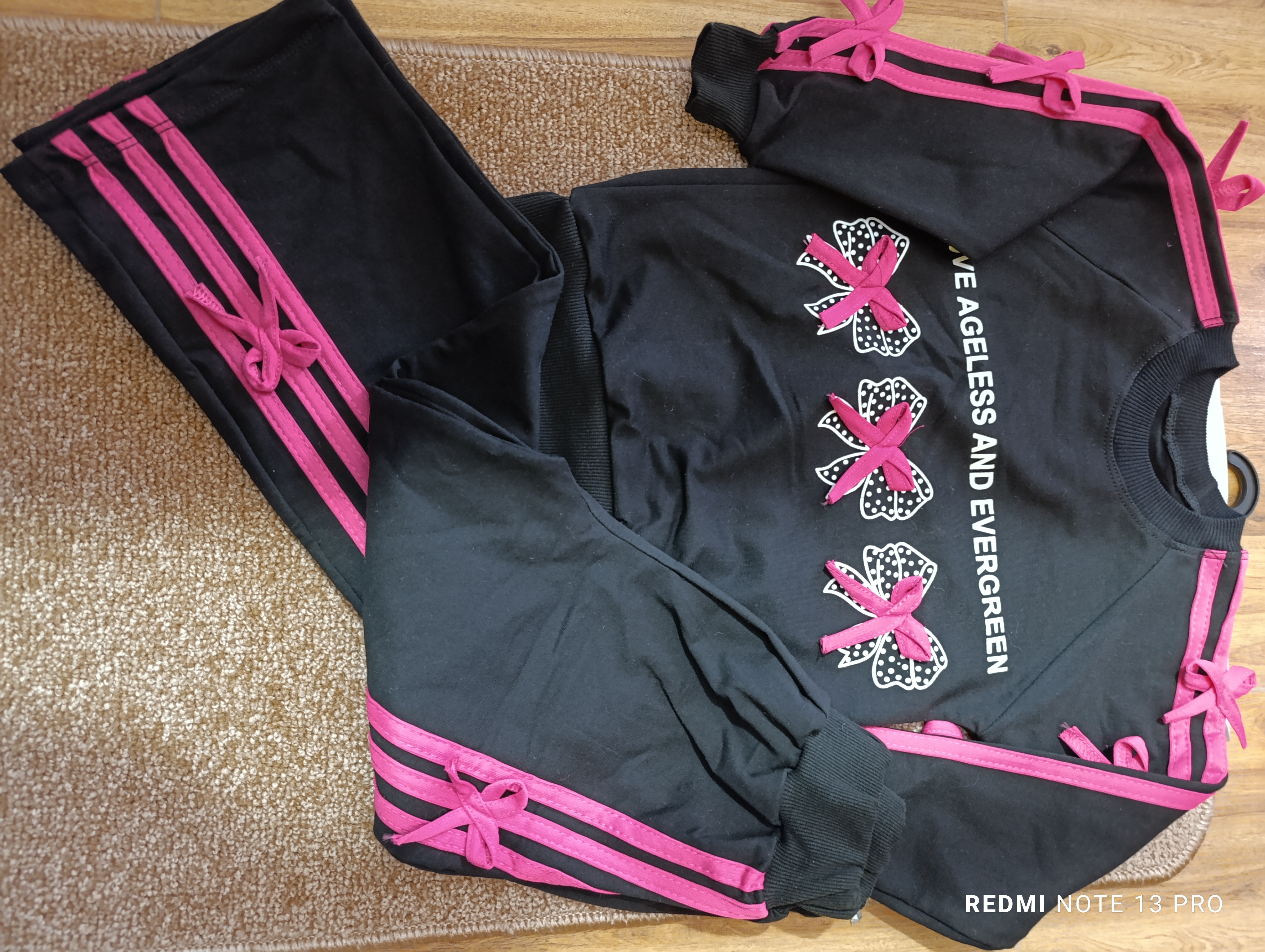 ست بلوز شلوار مشکی صورتی پاپیون نخ پنبه دخترانه